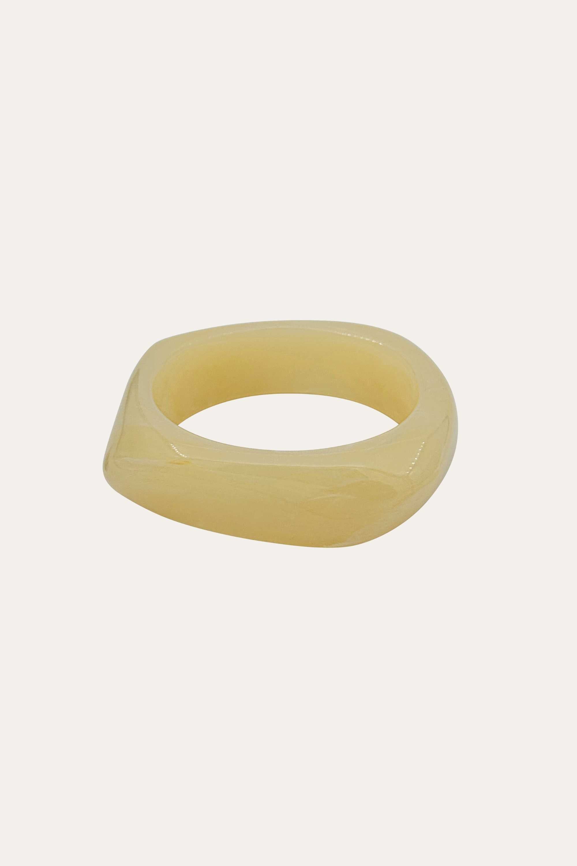 The Honey Bangle radiates gentle warmth. Its glossy golden hue and smooth organic curves bring a soft, modern glow to any look.