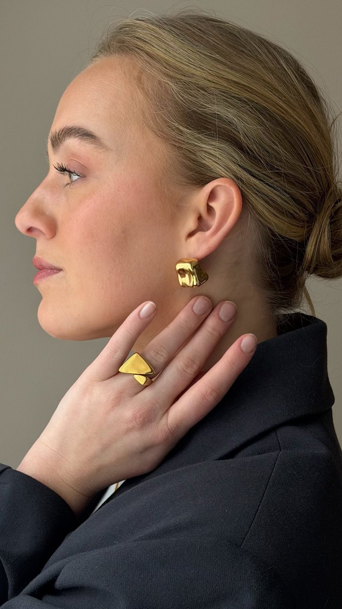 The Aris Ring radiates bold softness. Its sculptural curves and fluid gold surface bring effortless elegance that catches every light with quiet strength and grace.