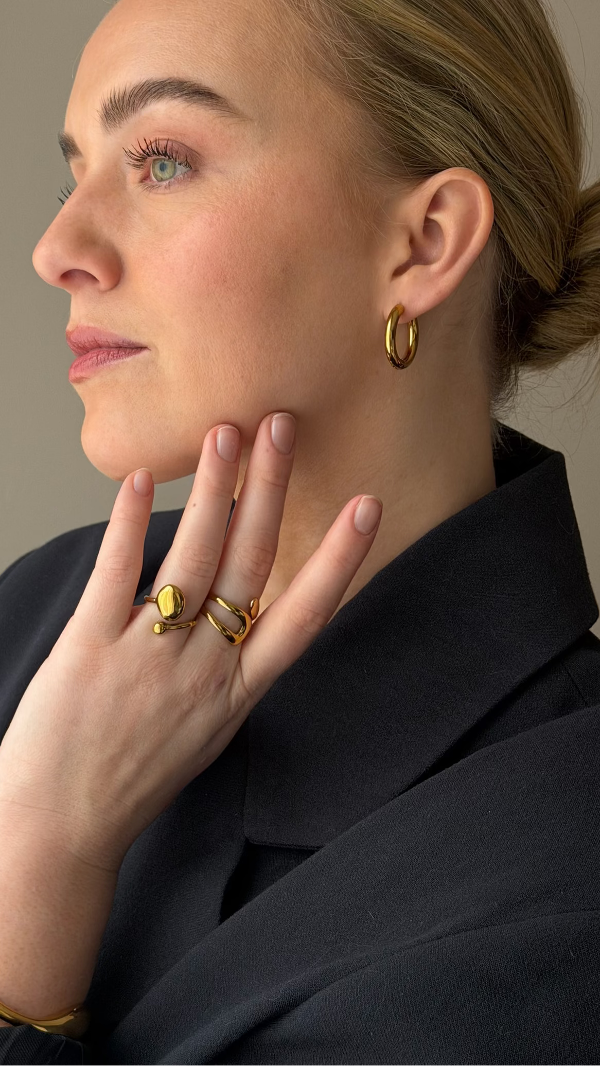 The Halo Hoops embrace pure simplicity. Their polished gold form offers effortless elegance, perfect for everyday wear or layered styling.