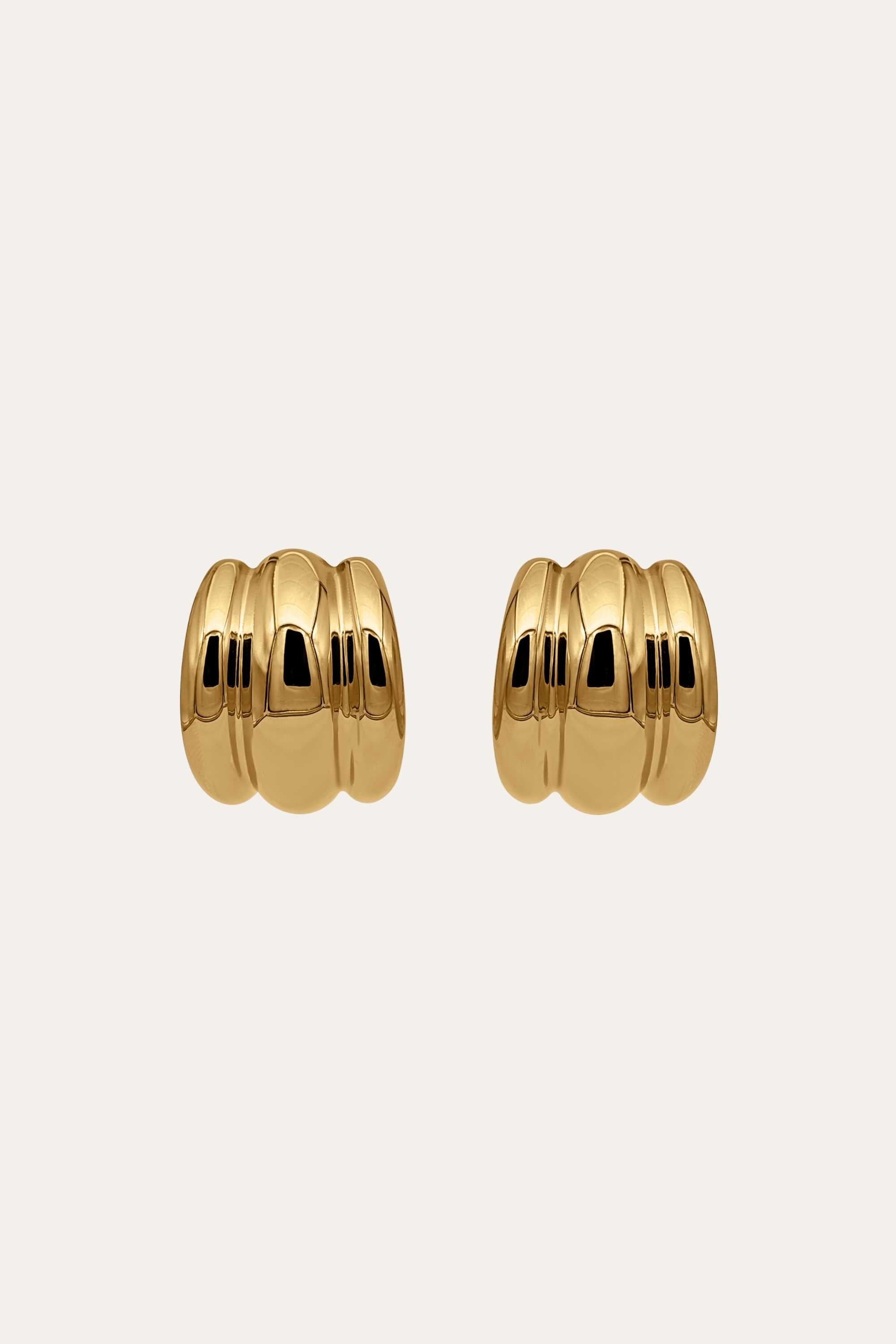 The Triya Hoops Gold exude sculptural elegance. Their bold, ridged form and warm shine make them the perfect statement for refined confidence.