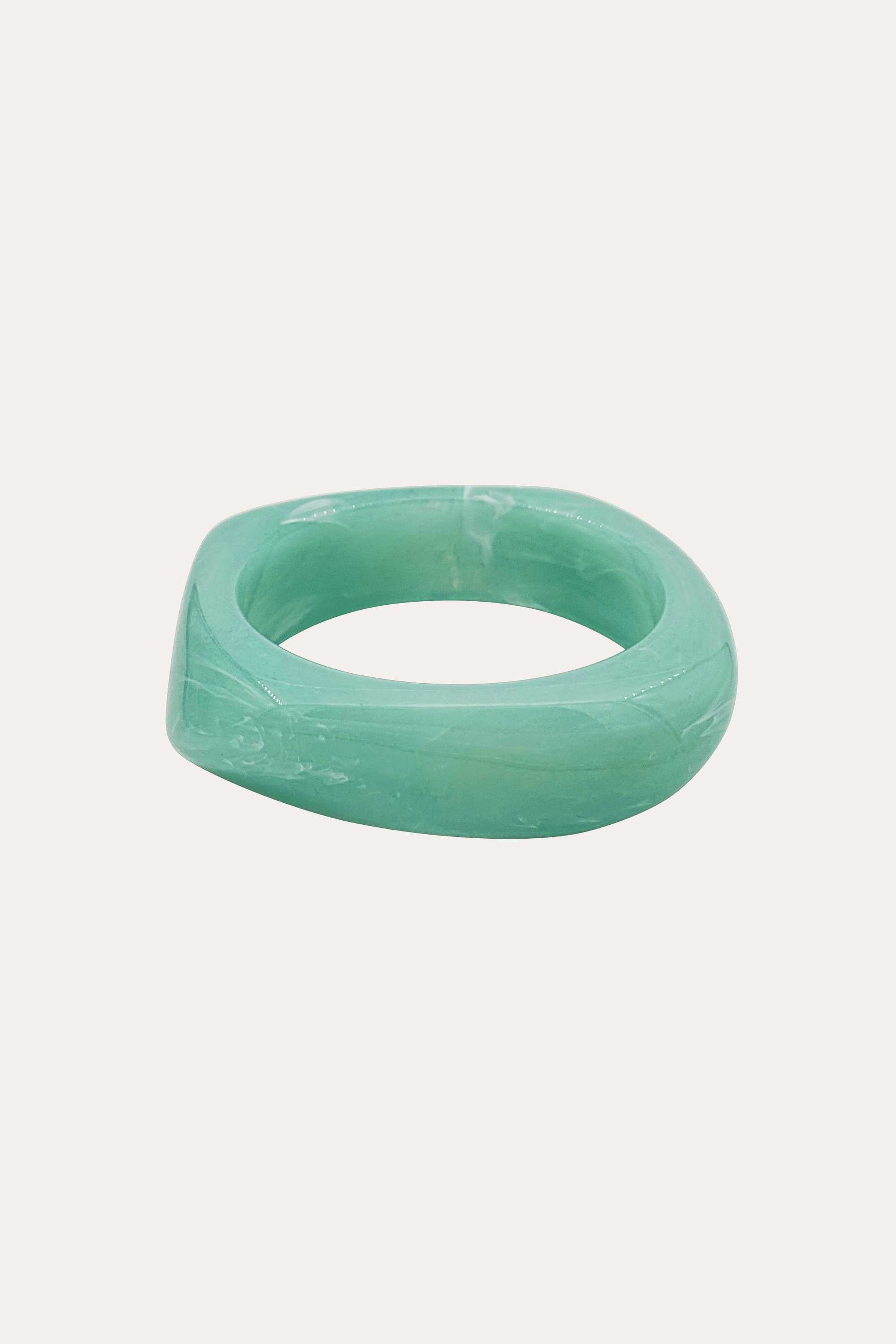 The Minty Bangle shines in cool turquoise tones, blending smooth curves with a soft marbled texture. A refreshing piece that radiates modern charm.